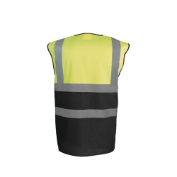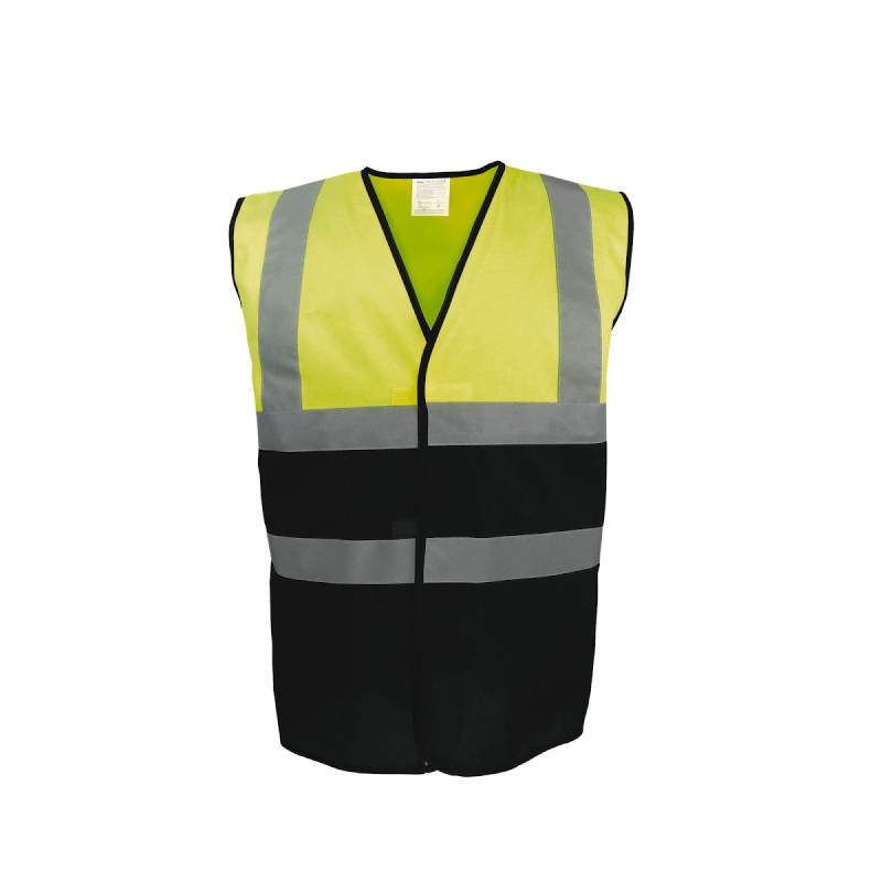 100% polyester. Gilet deux tons contrastés, en tissu recyclé 100 % polyester, avec fermeture auto-agrippante ; Deux bandes réfléchissantes de 5 cm de large autour du corps et une sur chaque épaule ; Jaune/Orange Hi-Vis conforme à la norme EN ISO20471:2013 Classe 2 ; Toutes les autres couleurs sont conformes à la norme EN ISO20471:2013 Classe 1.