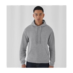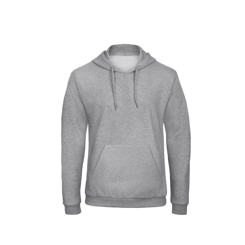 50% coton / 50% polyester. Molleton gratté. Bord inférieur et poignets en côte élasthanne 1x1. Double surpiqûres à cheval au niveau des emmanchures. Poche kangourou. Capuche à deux pans avec cordon ton sur ton en forme de tube. Manches montées. Coutures latérales. Modèle unisexe. Système « B&C No Label » : sans étiquette de marque pour un rebranding parfait.