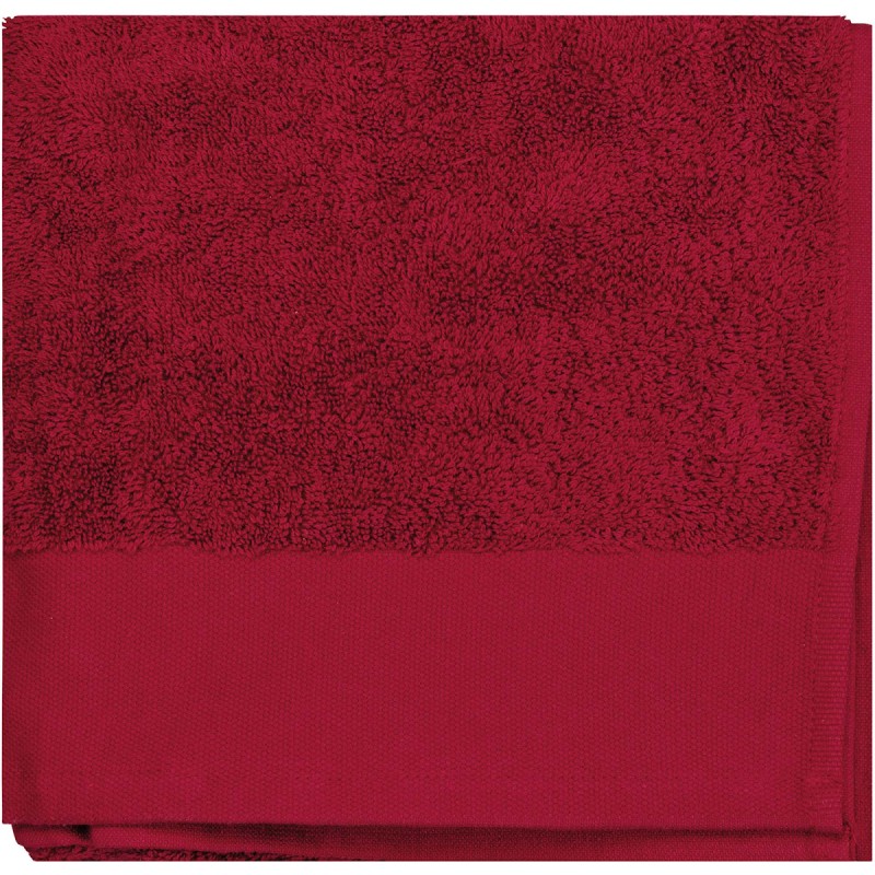 100% coton biologique. Maille bouclette et bordure de serviette plate Terry 8 cm (1 côté) pour une personnalisation optimale. Dimensions 100 x 50 cm.