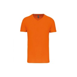 Coloris unis : 100% coton. Coloris Ash Heather : 98% coton / 2% viscose. Coloris Oxford Grey : 90% coton / 10% viscose. Tous les coloris sont fabriqués à partir de coton en conversion biologique. Coton peigné. Encolure en V en bord-côte avec élasthanne. Bande de propreté ton sur ton à l'encolure. Tubulaire. Finition double aiguille bas de manches et bas de vêtement.