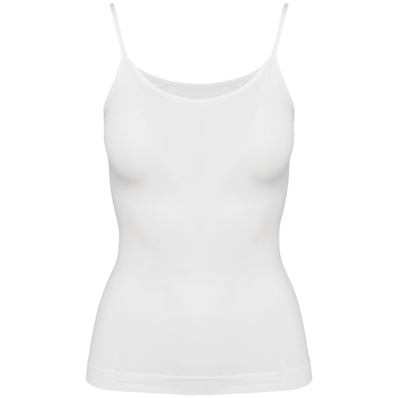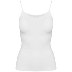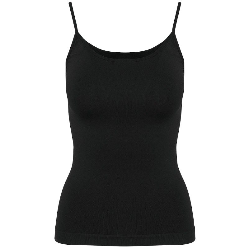 94% polyamide/ 6% élasthanne. Conçu à partir de 56% polyamide recyclé pré-consumer. Fil Q-NOVA®. Tissu jersey. Coupe moulante. Sans coutures. Fines bretelles. Biais de finition à l'encolure et emmanchures. Ourlet bas de vêtement avec couture invisible. Etiquette de marque Tear Away.