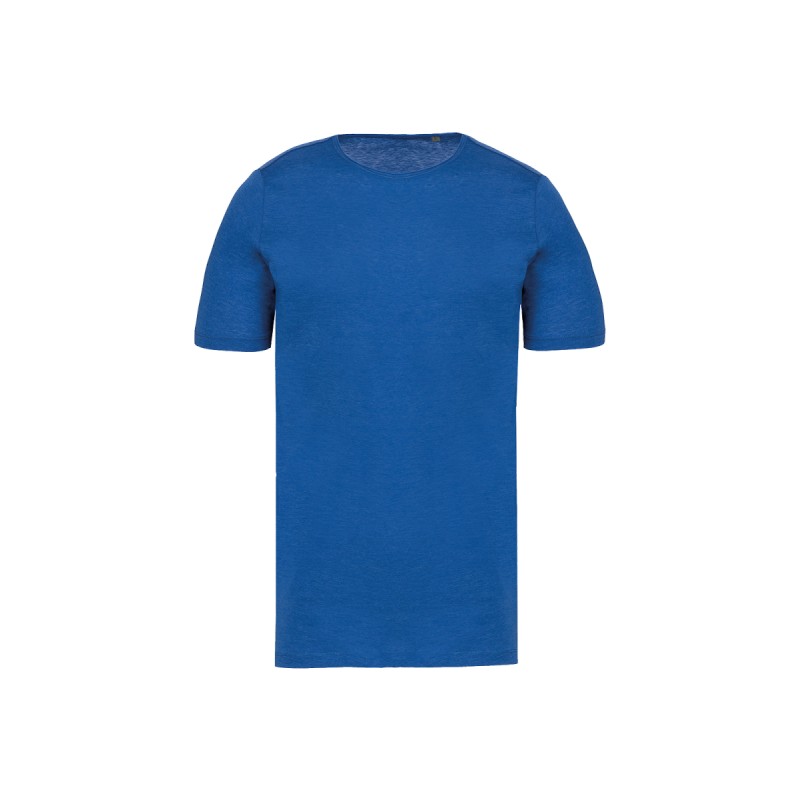 Coloris Unis : 100% coton biologique. Coloris Ocean Blue Heather : 80% coton biologique / 20% polyester. Encolure ronde avec bords francs. Finitions double aiguille bas de manches et de vêtement. Pas d'étiquette de marque au col, uniquement une puce de taille pour faciliter la personnalisation.