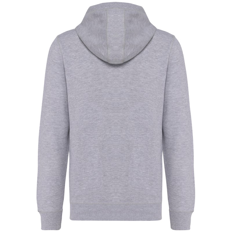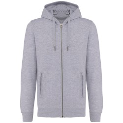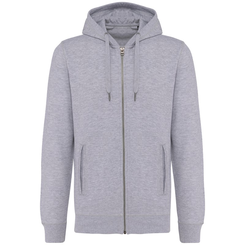 80% coton biologique / 20% polyester recyclé post-consumer. Oxford Grey 75% coton biologique / 25 % polyester recyclé post-consumer. Molleton non gratté French Terry LST (Low Shrinkage Terry). Tissu : lavage aux enzymes. Coupe ajustée. 2 poches passepoilées devant. Fermeture zippée métal. Bord-côte bas de manches, de vêtement et pourtour de capuche doublée avec cordon de serrage ton sur ton avec embout métal. Finition demi-lune encolure dos pour faciliter la personnalisation de marque à l'intérieur. Bande de propreté chevron intérieur col. Pas d'étiquette de marque au col, uniquement une puce de taille pour faciliter la personnalisation.