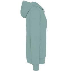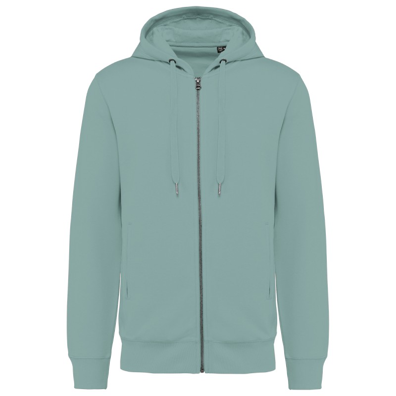 80% coton biologique / 20% polyester recyclé post-consumer. Oxford Grey 75% coton biologique / 25 % polyester recyclé post-consumer. Molleton non gratté French Terry LST (Low Shrinkage Terry). Tissu : lavage aux enzymes. Coupe ajustée. 2 poches passepoilées devant. Fermeture zippée métal. Bord-côte bas de manches, de vêtement et pourtour de capuche doublée avec cordon de serrage ton sur ton avec embout métal. Finition demi-lune encolure dos pour faciliter la personnalisation de marque à l'intérieur. Bande de propreté chevron intérieur col. Pas d'étiquette de marque au col, uniquement une puce de taille pour faciliter la personnalisation.