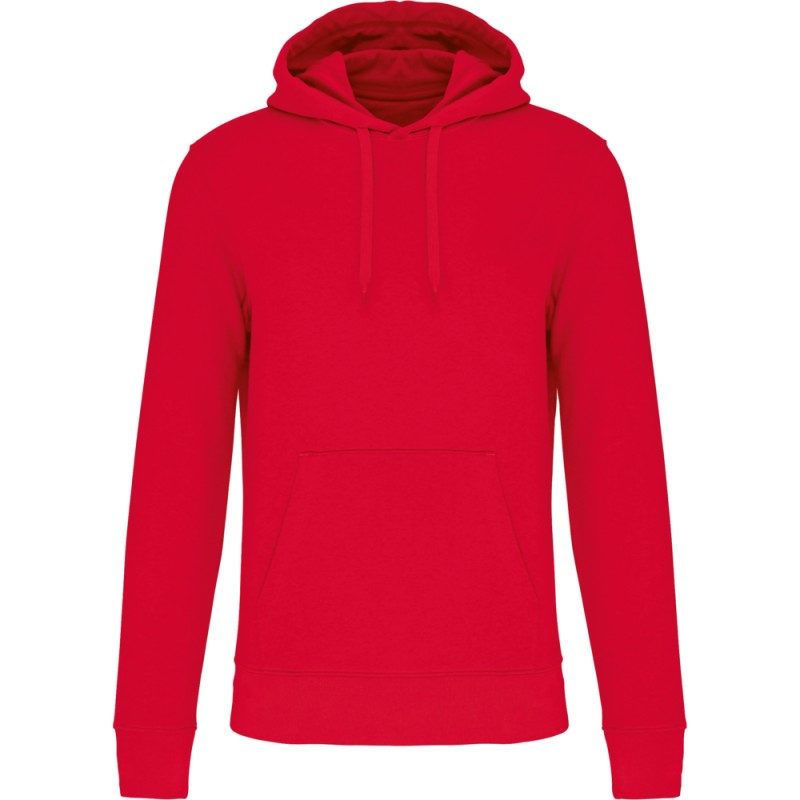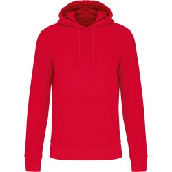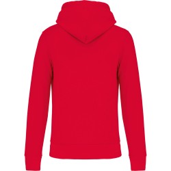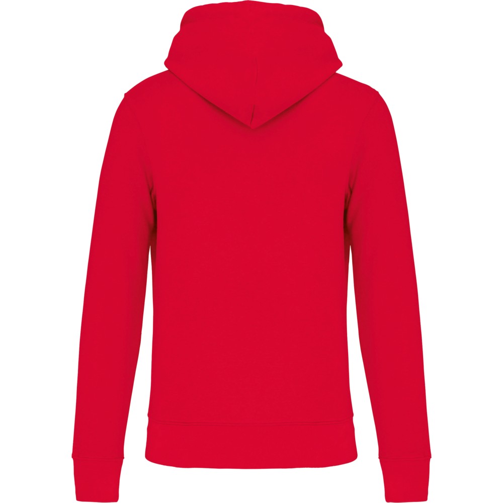 85% coton biologique / 15% polyester recyclé post-consumer. Surface extérieure 100% coton peigné. Molleton gratté 3 fils LSF (Low Shrinkage Fleece). Lavage aux enzymes. Coupe droite. Bord-côte 1x1 montage tubulaire pour une meilleure finition au bas de manches et de vêtement. Poche kangourou. Capuche doublée 100% coton, coton jersey 180g. Bande de propreté jersey ton sur ton et finition demi-lune intérieur col. Finition double aiguilles sur bas de manches, bas de vêtement et col. Pas d'étiquette de marque au col, uniquement une puce de taille pour faciliter la personnalisation.