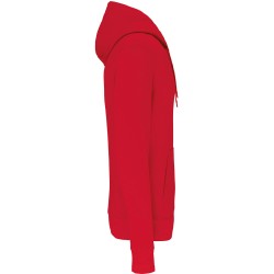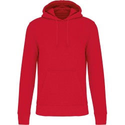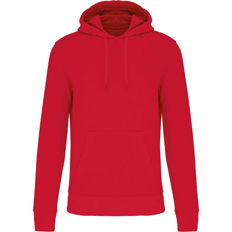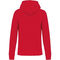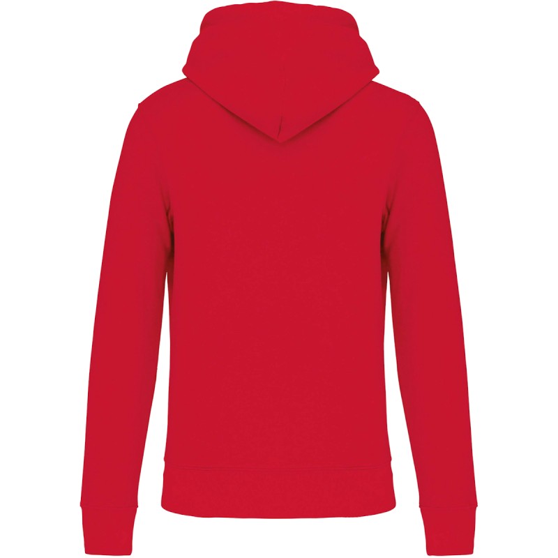 85% coton biologique / 15% polyester recyclé post-consumer. Surface extérieure 100% coton peigné. Molleton gratté 3 fils LSF (Low Shrinkage Fleece). Lavage aux enzymes. Coupe droite. Bord-côte 1x1 montage tubulaire pour une meilleure finition au bas de manches et de vêtement. Poche kangourou. Capuche doublée 100% coton, coton jersey 180g. Bande de propreté jersey ton sur ton et finition demi-lune intérieur col. Finition double aiguilles sur bas de manches, bas de vêtement et col. Pas d'étiquette de marque au col, uniquement une puce de taille pour faciliter la personnalisation.