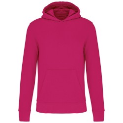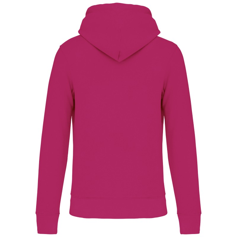 85% coton biologique / 15% polyester recyclé post-consumer. Surface extérieure 100% coton peigné. Molleton gratté 3 fils LSF (Low Shrinkage Fleece). Lavage aux enzymes. Coupe droite. Bord-côte 1x1 montage tubulaire pour une meilleure finition au bas de manches et de vêtement. Poche kangourou. Capuche doublée 100% coton, coton jersey 180g. Bande de propreté jersey ton sur ton et finition demi-lune intérieur col. Finition double aiguilles sur bas de manches, bas de vêtement et col. Pas d'étiquette de marque au col, uniquement une puce de taille pour faciliter la personnalisation.