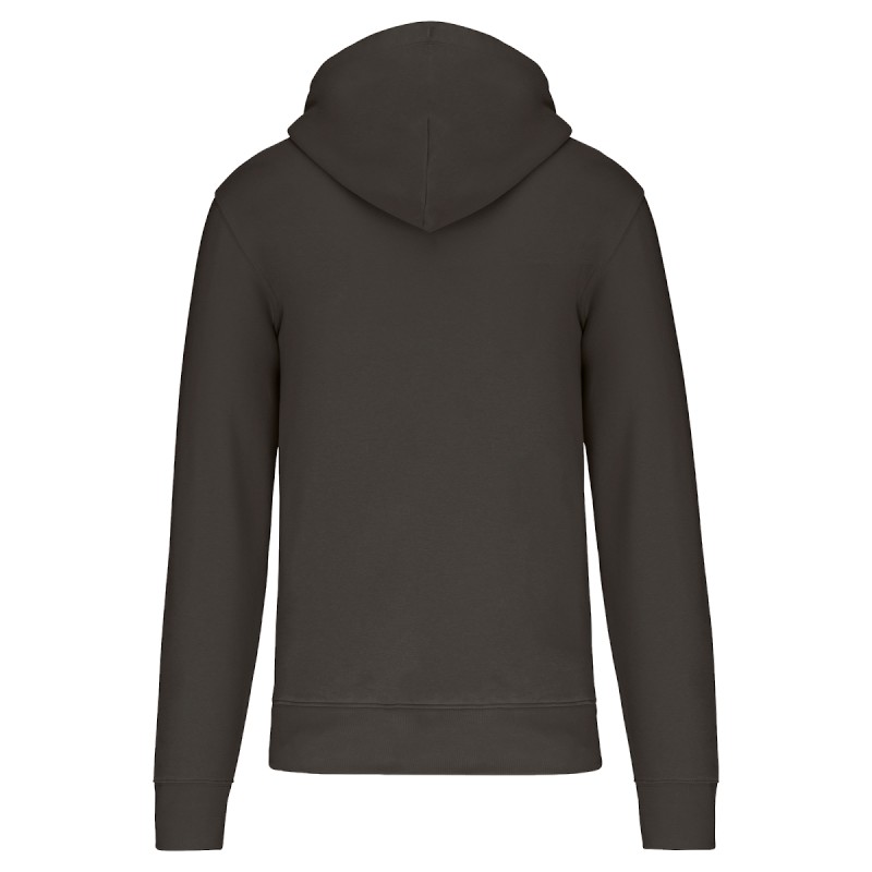 85% coton biologique / 15% polyester recyclé post-consumer. Surface extérieure 100% coton peigné. Molleton gratté 3 fils LSF (Low Shrinkage Fleece). Lavage aux enzymes. Coupe droite. Poches kangourou. Fermeture zippée nylon ton sur ton. Capuche doublée 100% coton, coton jersey 180g. Bord-côte 1x1 montage tubulaire pour une meilleure finition au bas de manches et de vêtement. Bande de propreté jersey ton sur ton et finition demi-lune intérieur col. Finition double aiguilles sur bas de manches, bas de vêtement et col. Pas d'étiquette de marque au col, juste une puce de taille pour faciliter la personnalisation.