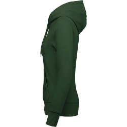 85% coton biologique / 15% polyester recyclé post-consumer. Surface extérieure 100% coton peigné. Molleton gratté 3 fils LSF (Low Shrinkage Fleece). Lavage aux enzymes. Coupe droite. Poches kangourou. Fermeture zippée nylon ton sur ton. Capuche doublée 100% coton, coton jersey 180g. Bord-côte 1x1 montage tubulaire pour une meilleure finition au bas de manches et de vêtement. Bande de propreté jersey ton sur ton et finition demi-lune intérieur col. Finition double aiguilles sur bas de manches, bas de vêtement et col. Pas d'étiquette de marque au col, juste une puce de taille pour faciliter la personnalisation.