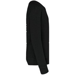 80% coton biologique / 20% polyester. Molleton non gratté (French Terry). LST (Low Shrinkage Terry). Bord-côte col, poignets et bas de vêtement. Bande de propreté chevron intérieur col et application en V à l'encolure. Pas d'étiquette de marque au col, uniquement une puce de taille pour faciliter la personnalisation.