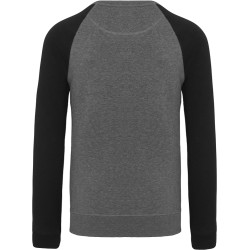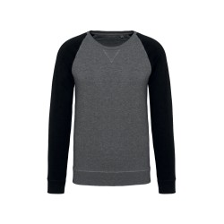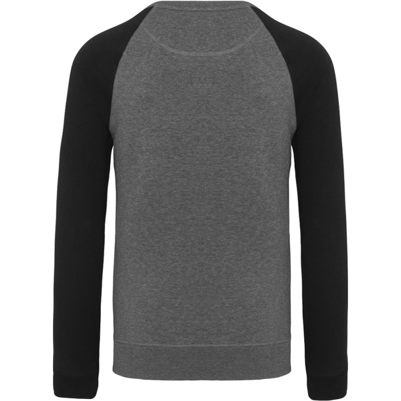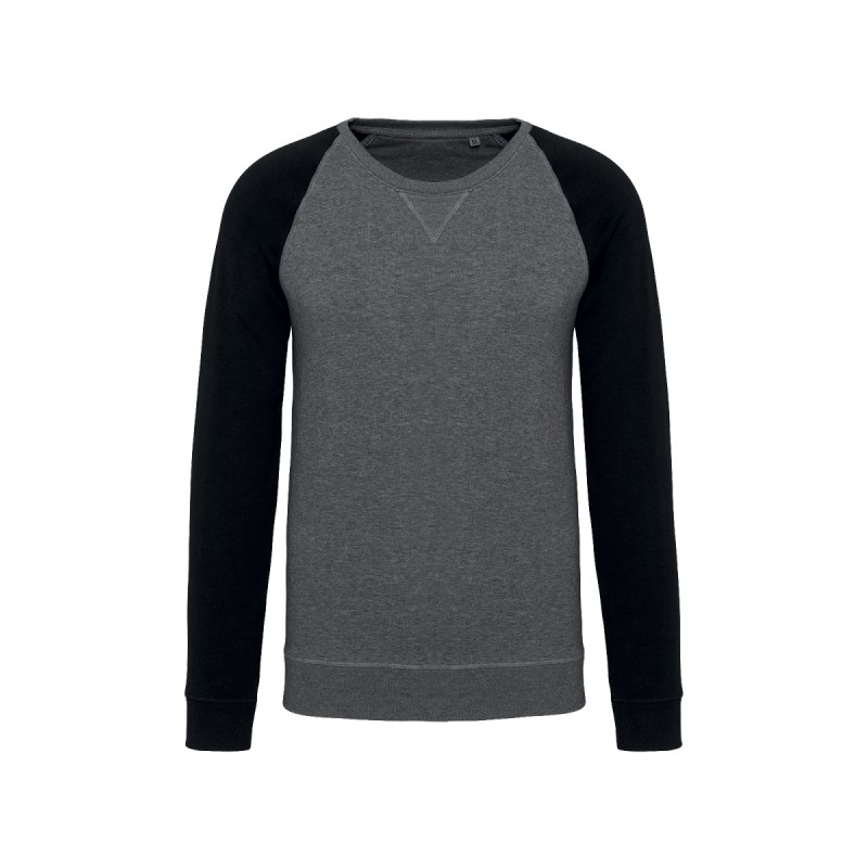 80% coton biologique / 20% polyester. Molleton non gratté French Terry LST (Low Shrinkage Terry). Bord-côte col, poignets et bas de vêtement.  Bande de propreté chevron intérieur col et application en V à l'encolure. Pas d'étiquette de marque au col, uniquement une puce de taille pour faciliter la personnalisation.