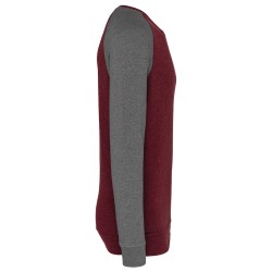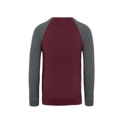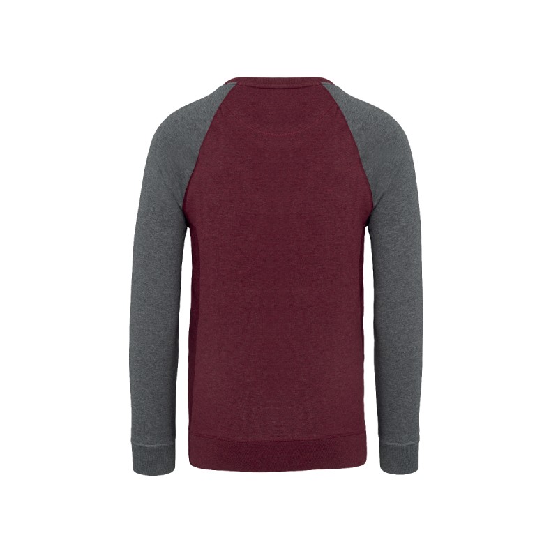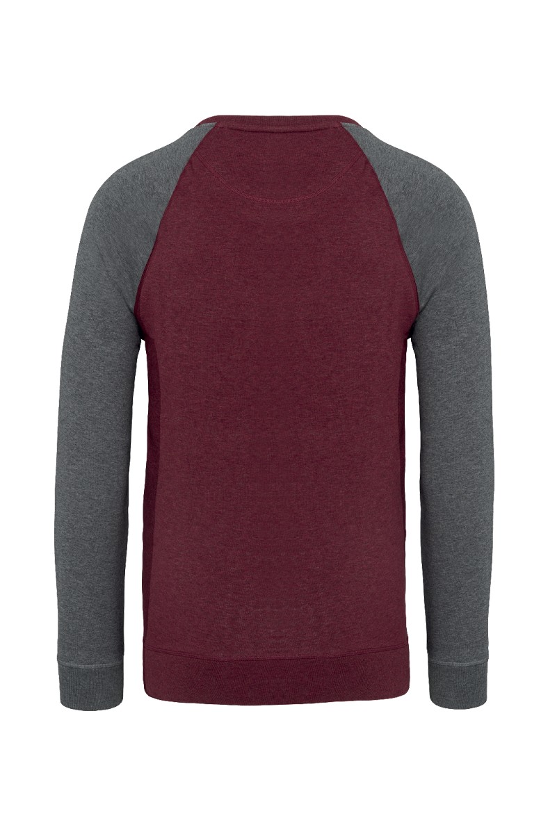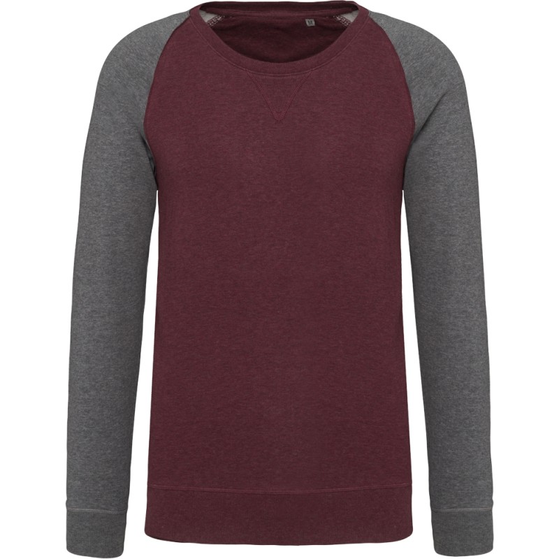 80% coton biologique / 20% polyester. Molleton non gratté French Terry LST (Low Shrinkage Terry). Bord-côte col, poignets et bas de vêtement.  Bande de propreté chevron intérieur col et application en V à l'encolure. Pas d'étiquette de marque au col, uniquement une puce de taille pour faciliter la personnalisation.