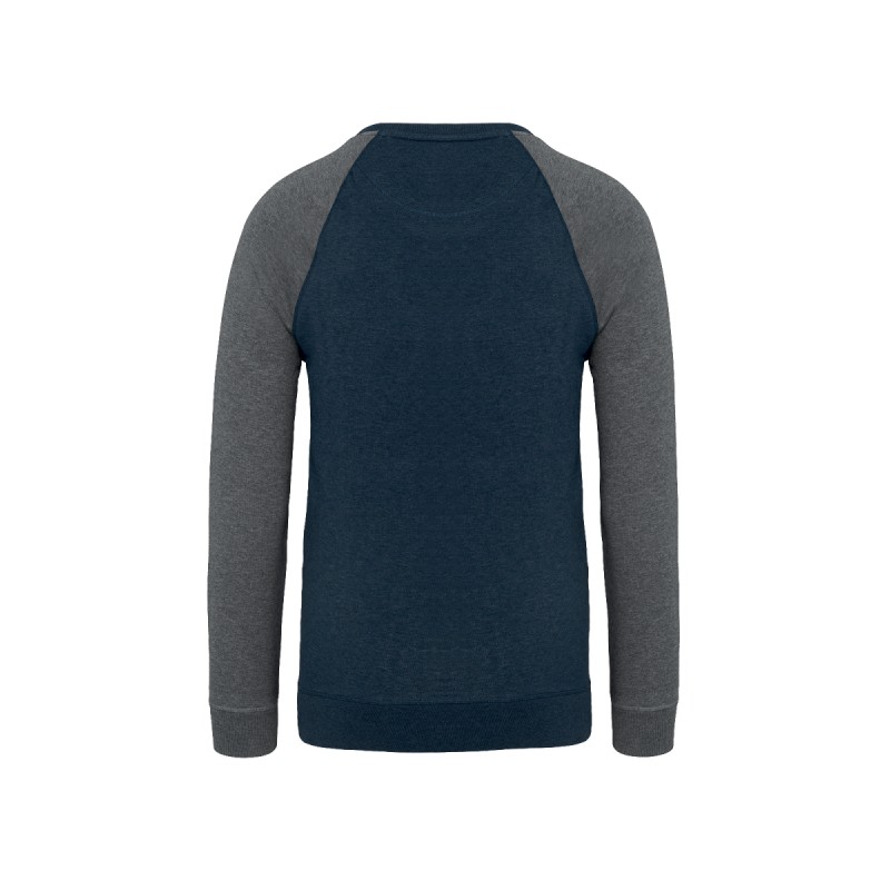 80% coton biologique / 20% polyester. Molleton non gratté French Terry LST (Low Shrinkage Terry). Bord-côte col, poignets et bas de vêtement. Bande de propreté chevron intérieur col et application en V à l'encolure. Pas d'étiquette de marque au col, uniquement une puce de taille pour faciliter la personnalisation.