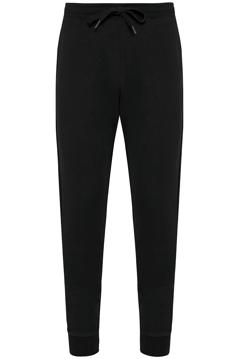 80% coton biologique / 20% polyester recyclé post-consumer. Oxford Grey 75% coton biologique / 25 % polyester recyclé post-consumer. Molleton non gratté french terry LST (Low Shrinkage Terry). Tissu : lavage aux enzymes. 2 poches côté et 1 poche arrière plaquée. Ceinture élastiquée en bord-côte 1x1 avec cordon de serrage plat ton sur ton avec finition embout métal. Bas de jambe en bord-côte 1x1. Pas d'étiquette de marque, uniquement une puce de taille pour faciliter la personnalisation.