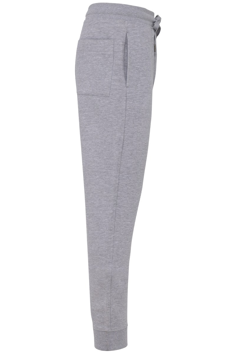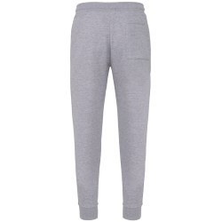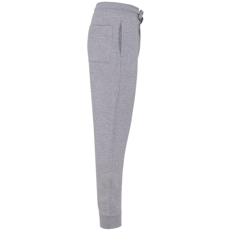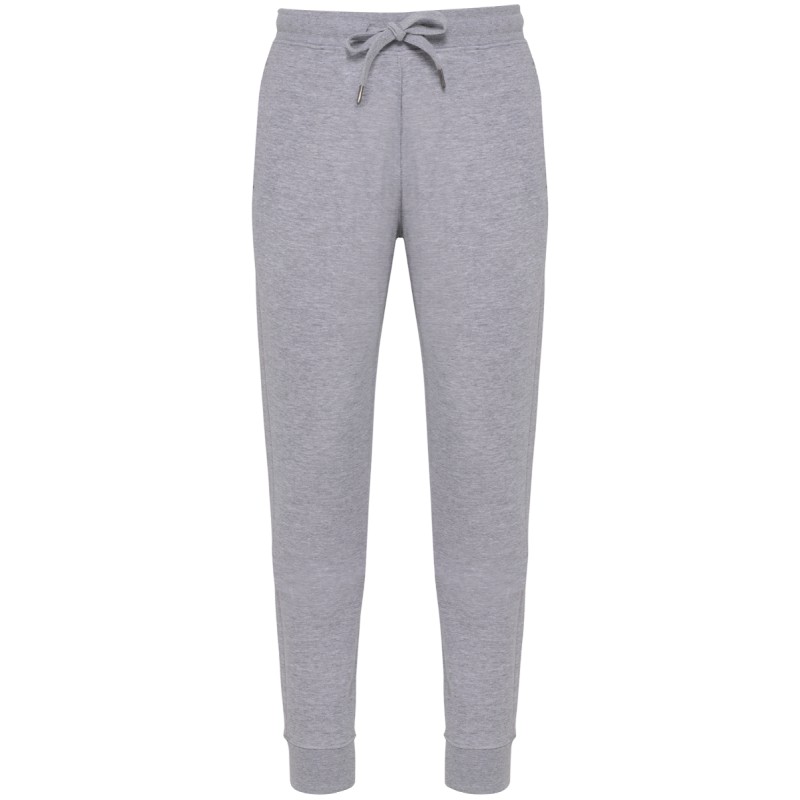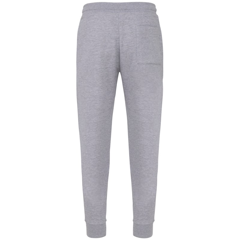 80% coton biologique / 20% polyester recyclé post-consumer. Oxford Grey 75% coton biologique / 25 % polyester recyclé post-consumer. Molleton non gratté french terry LST (Low Shrinkage Terry). Tissu : lavage aux enzymes. 2 poches côté et 1 poche arrière plaquée. Ceinture élastiquée en bord-côte 1x1 avec cordon de serrage plat ton sur ton avec finition embout métal. Bas de jambe en bord-côte 1x1. Pas d'étiquette de marque, uniquement une puce de taille pour faciliter la personnalisation.