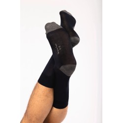 89% coton / 9% polyamide / 2% élasthanne. Origine France garantie. Fil de coton égyptien mercerisé. Remaillage maille à maille. Jauge 18. Talon et pointe renforcés et contrastés. Insertion jacquard "Fabriqué en France" et information pointure sur le bas de la chaussette. Côte double épaisseur sur le haut de la tige pour un maximum de confort.