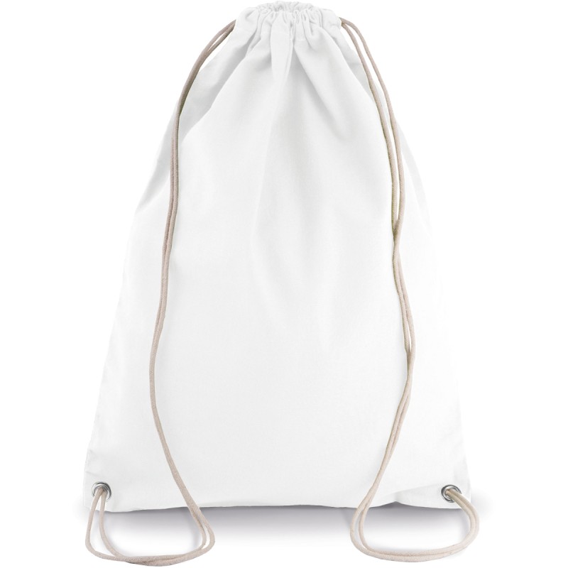 Sac à dos en coton avec bretelles en cordelettes coton blanches.