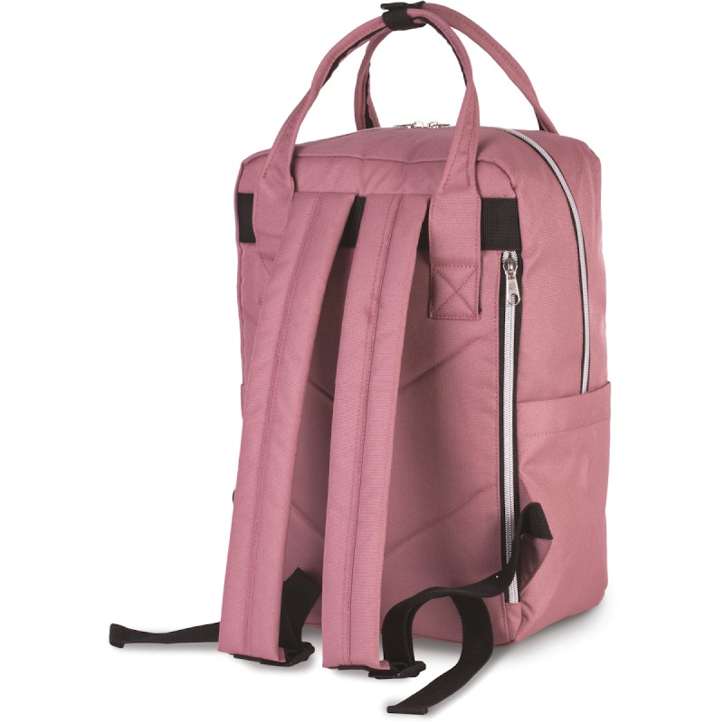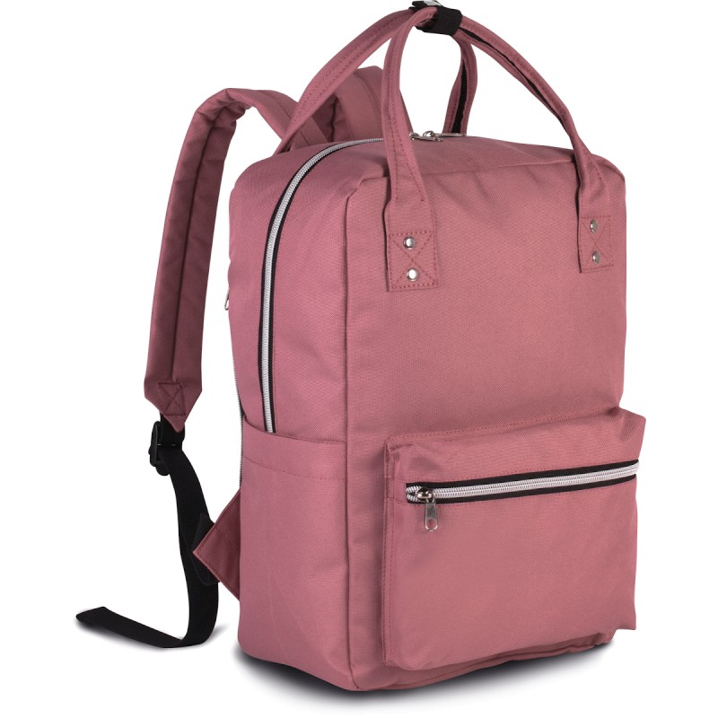 Sac à dos en polyester 600D, pouvant aussi être utilisé en sac à main grâce aux poignées sur le haut. Poche intérieure matelassée pouvant loger une tablette ou un téléphone. Ouverture zippée au dos. Bretelles et dos matelassés. Poche zippée devant. Zips de couleur contrastée.