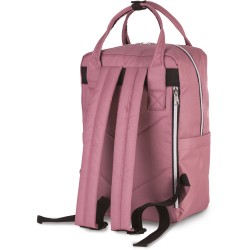 Sac à dos en polyester 600D, pouvant aussi être utilisé en sac à main grâce aux poignées sur le haut. Poche intérieure matelassée pouvant loger une tablette ou un téléphone. Ouverture zippée au dos. Bretelles et dos matelassés. Poche zippée devant. Zips de couleur contrastée.