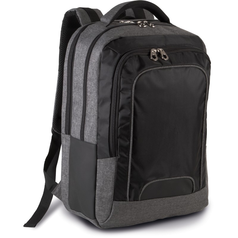 Sac à dos en polyester 600D avec détails contrastés en polyester dobby. 3 compartiments zippés dont 1 emplacement pouvant loger 1 ordinateur jusqu'à 15''. Poignée supérieure, dos et bretelles matelassés. Dos avec attache fixation trolley.
