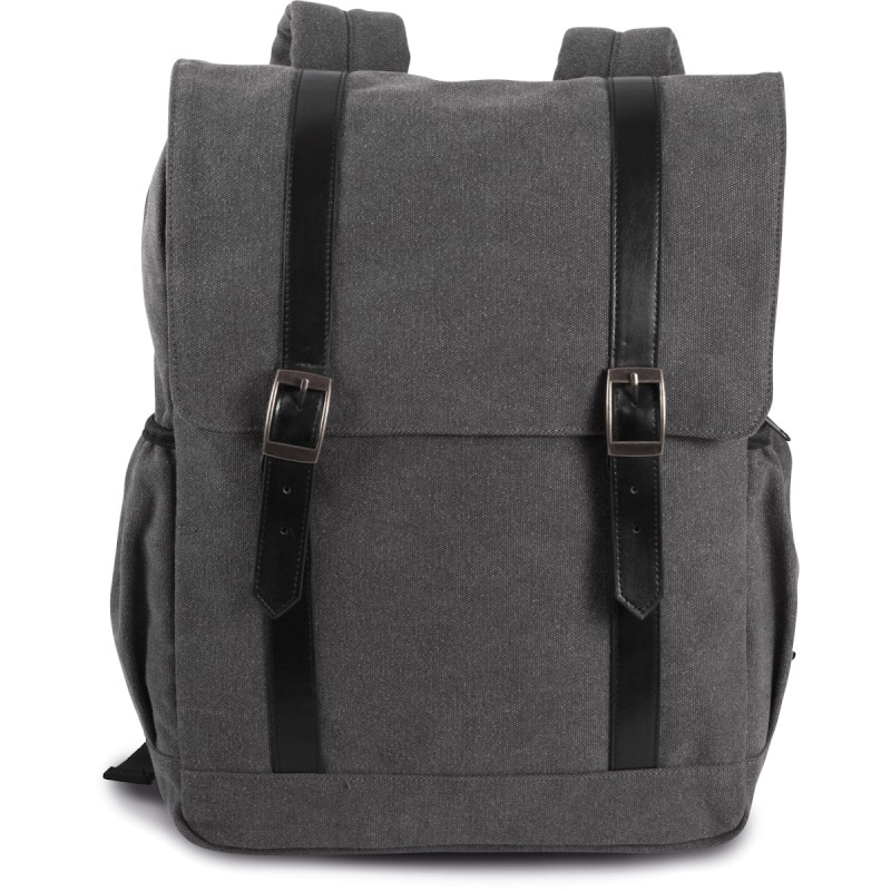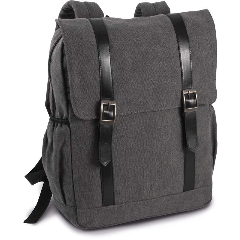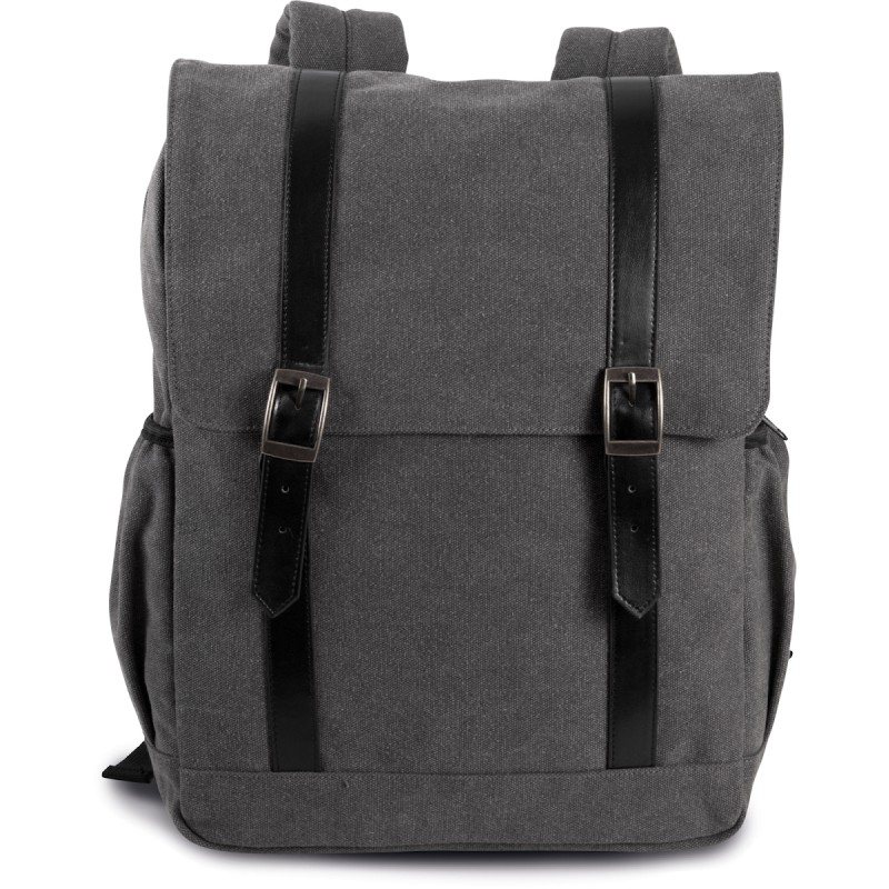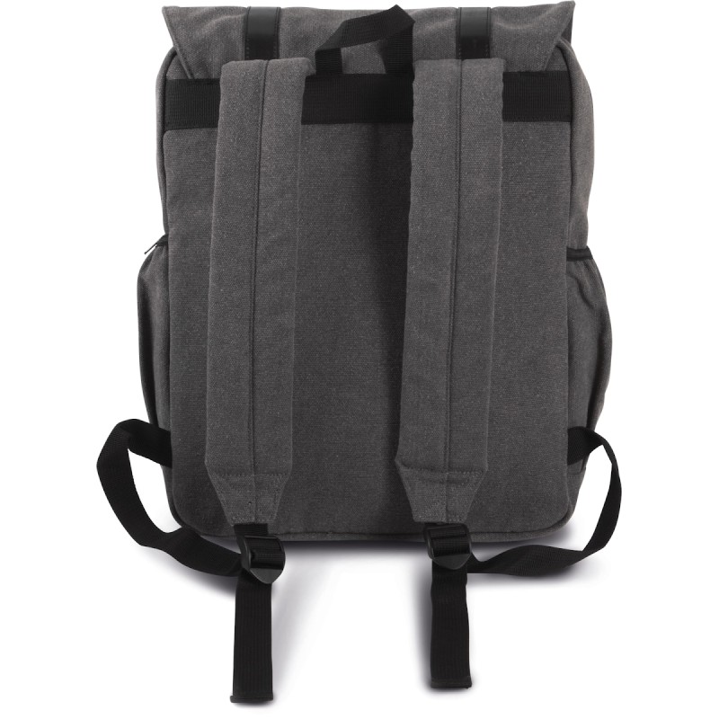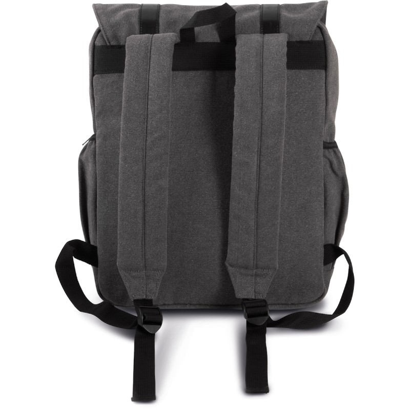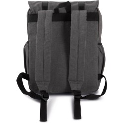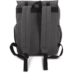 Sac à dos en toile de coton à rabat. Sangles contrastées avec fermeture à boucle métallique décorative et boutons pression. Compartiment intérieur zippé pouvant loger des tablettes et ordinateurs jusqu'à 13''. Bretelles ergonomiques et dos matelassés.