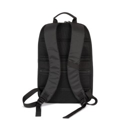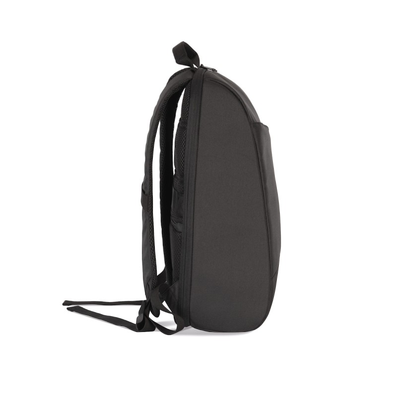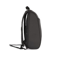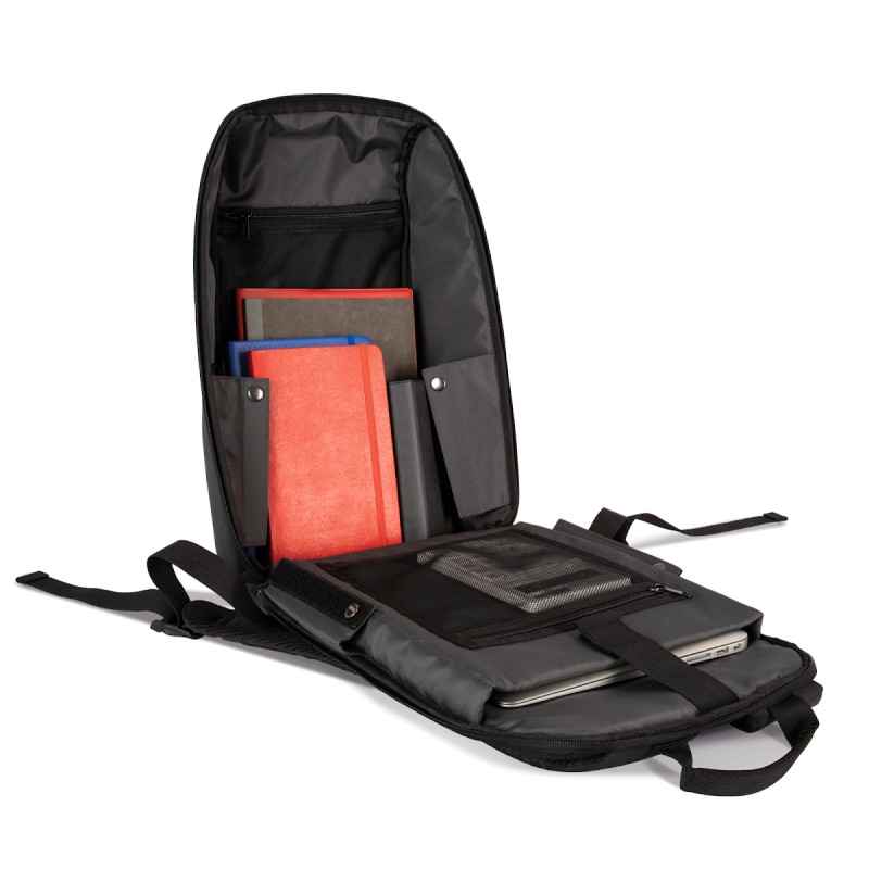 100% polyester. Sac à dos de travail porte-ordinateur (15 inch) conçu à partir de 50% de polyester recyclé. Ouverture en portefeuille avec fermeture zip antivol au dos . Poche avant porte-objets personnalisable. Poche antivol au dos avec fermeture zip. Porte-ordinateur matelassé + 3 grandes poches intérieures en filet avec fermetures zippées, pour ranger câbles et accessoires. Languette arrière pour enfiler le sac à dos dans la poignée de la valise à roulettes.