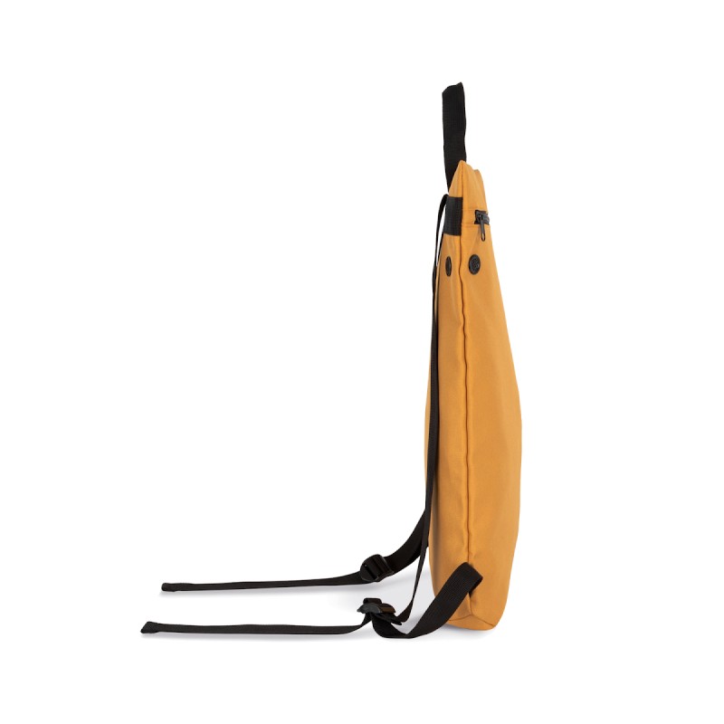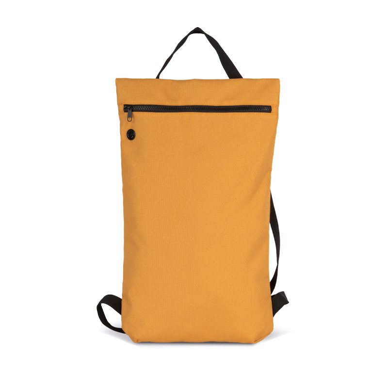 100% polyester 600DPU. Sac à dos plat, coupe slim, style urbain conçu à partir de 60% de polyester recyclé. Légèrement matelassé. Fermeture éclair à grandes dents, très tendance. Large surface de personnalisation. Poche arrière avec clip de fermeture antivol.