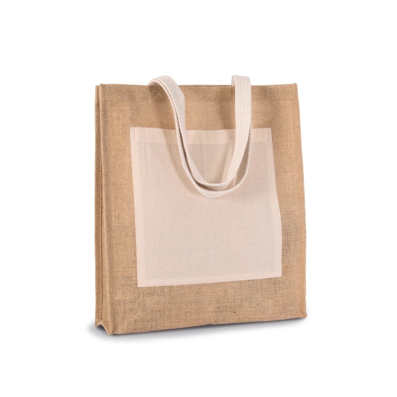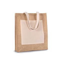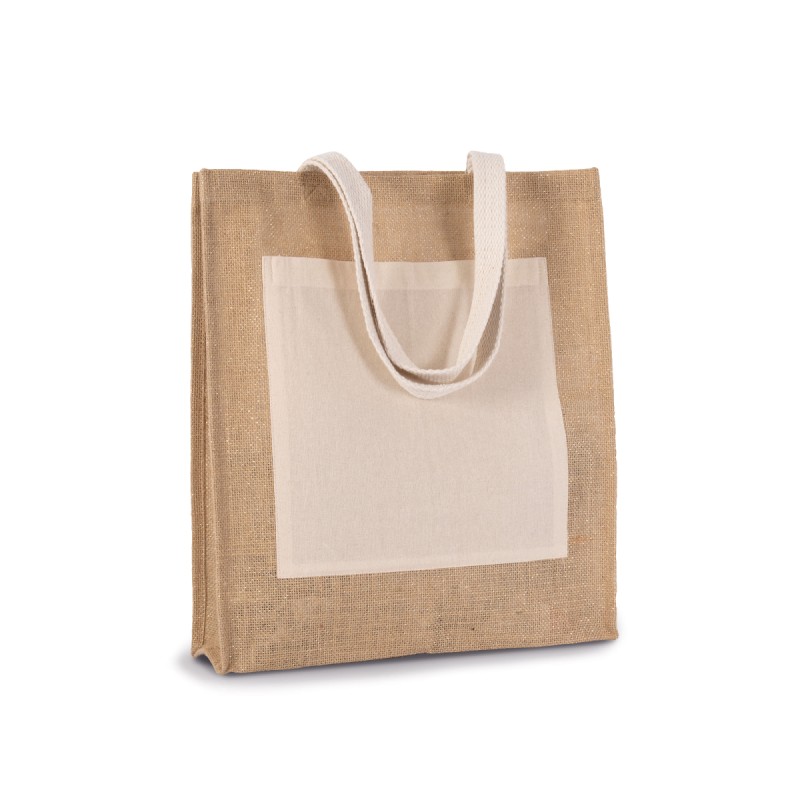 Sac shopping en toile de jute, poignée et poche devant en coton.