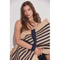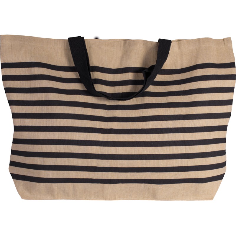 Grand sac fourre-tout en toile de jute et coton (juco), avec soufflet et anses de 55 cm de couleur contrastée.