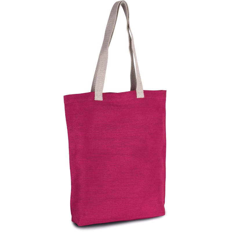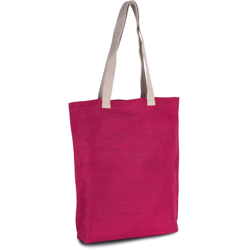 Sac shopping en toile de jute et coton (juco), avec soufflet et anses de 70 cm en coton couleur écru.