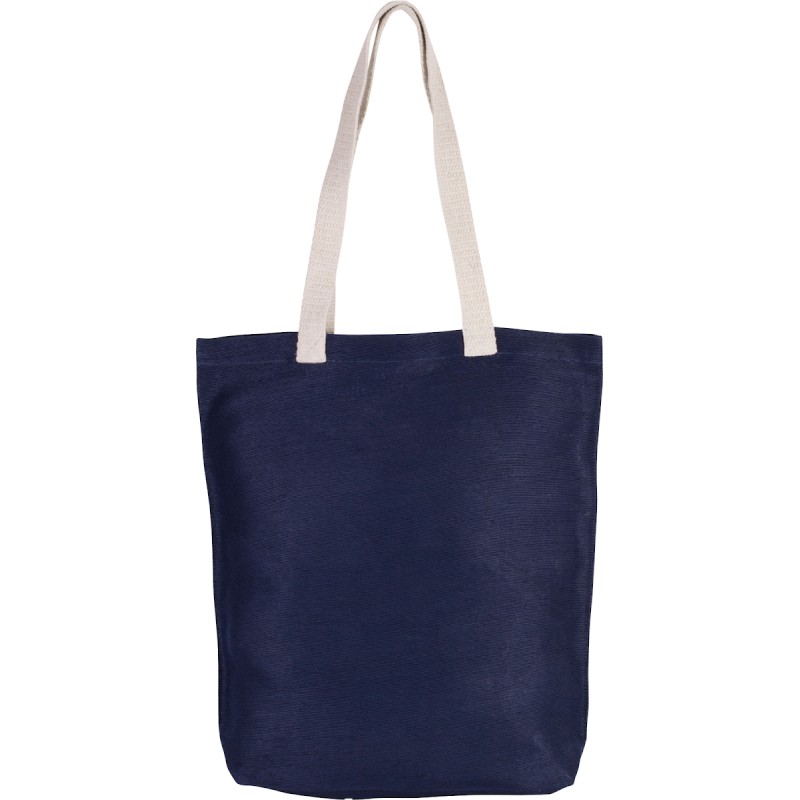 Sac shopping en toile de jute et coton (juco), avec soufflet et anses de 70 cm en coton couleur écru.