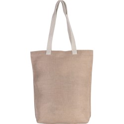 Sac shopping en toile de jute et coton (juco), avec soufflet et anses de 70 cm en coton couleur écru.