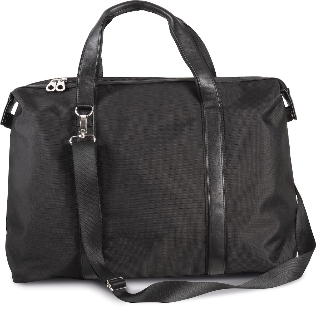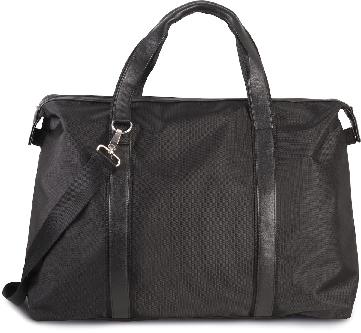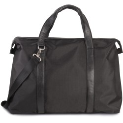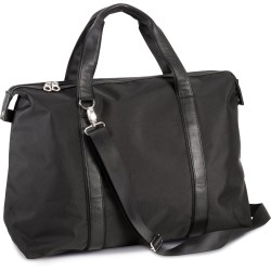 Sac fourre-tout de voyage en polyester 900D avec finition contrastée le long de la fermeture zippée. Doublure en polyester 210D. Poignées et bandoulière contrastées renforcées par sangle. Bandoulière amovible. Base avec pieds de stabilité.