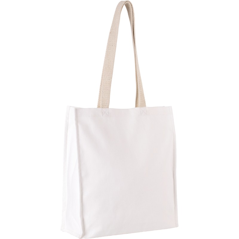 Sac cabas en coton canvas, à fond large avec soufflet, longues anses de 70 cm en coton couleur écru.