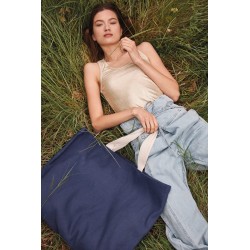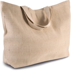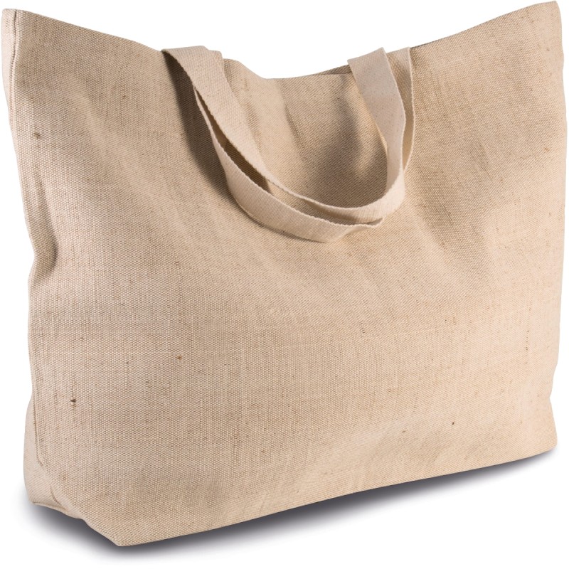 Grand sac fourre-tout en toile et coton avec soufflet et poignées contrastées de 55 cm. Le fil juco apporte au sac un tissage à aspect rustique.