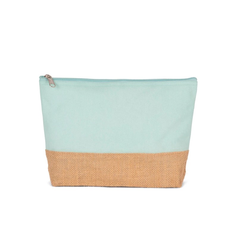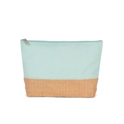 Pochette en toile de coton avec base contrastée en jute naturelle laminée.