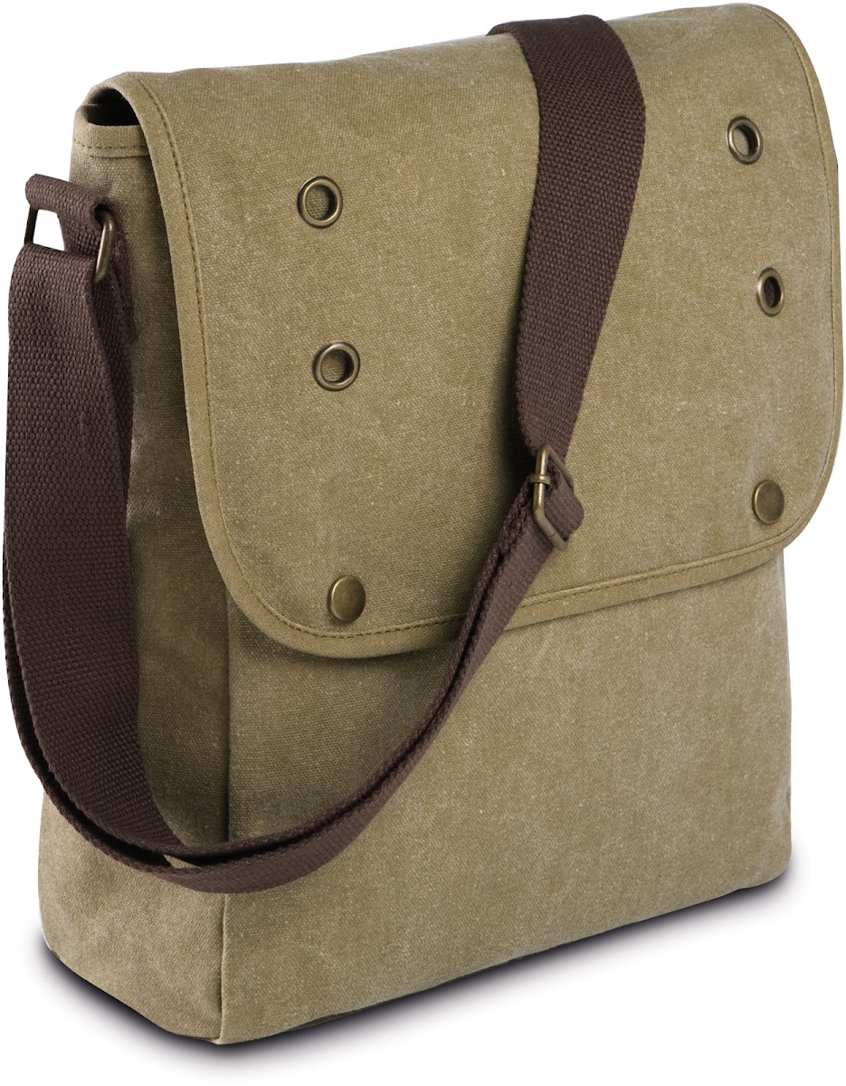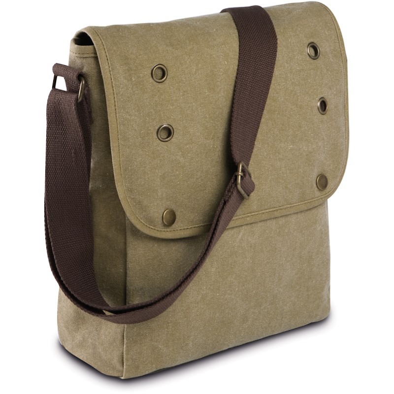 Sacoche en coton canvas avec bandoulière ajustable, look vintage, boucles et œillets finition vieux cuivre, 1 poche intérieure.