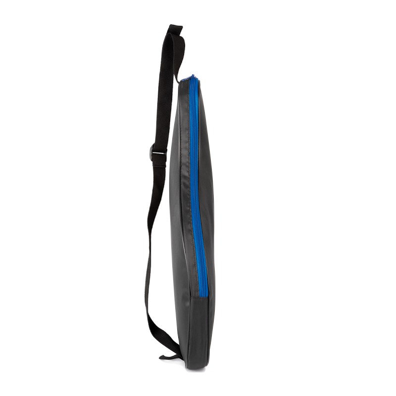 100% polyester recyclé. Ce sac est réalisé sur mesure pour une raquette. Une sangle réglable permet de le porter en bandoulière. Fermetures éclair contrastées.