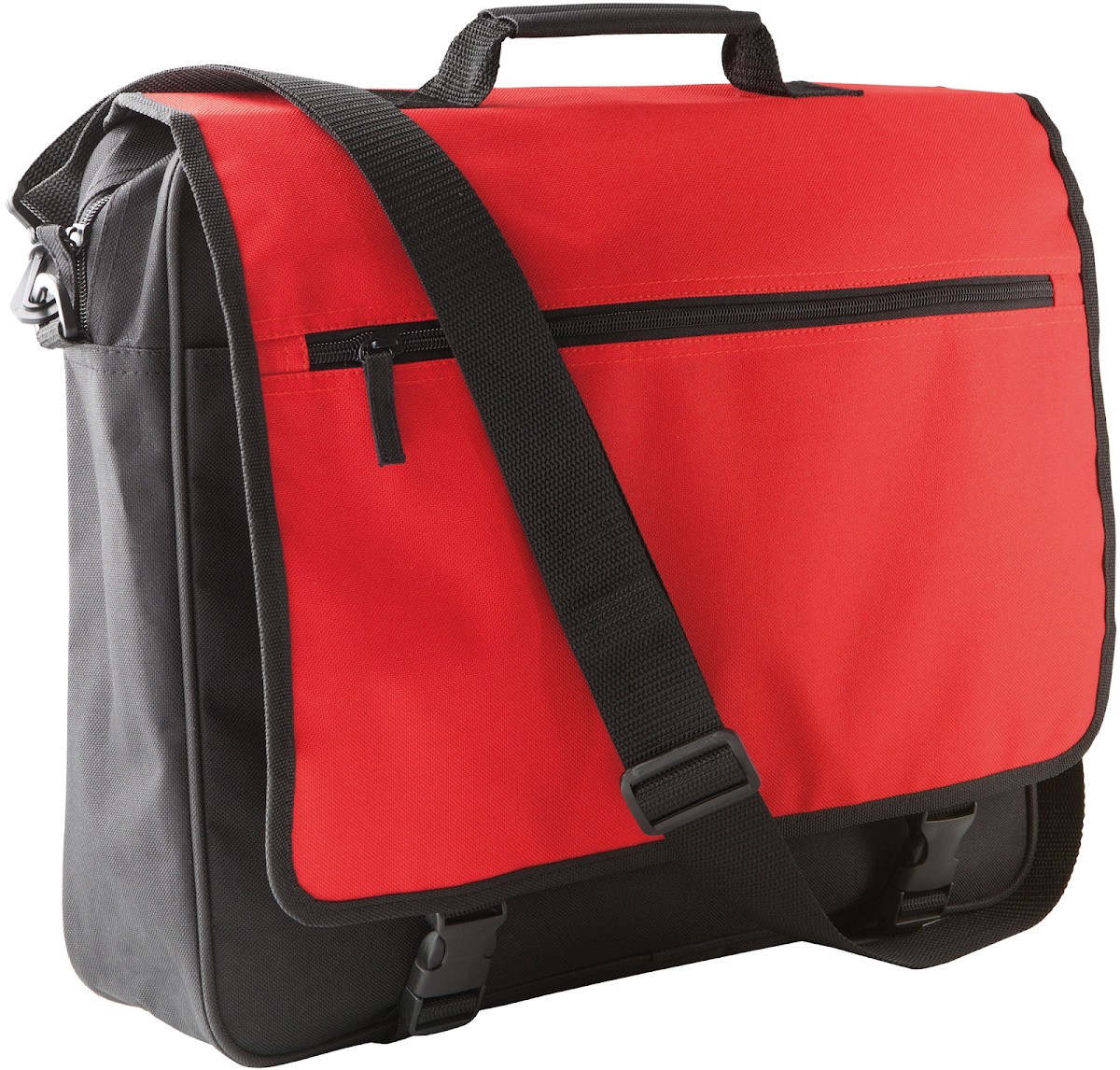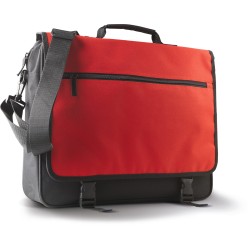 Porte-document en polyester 600D, rabat avec poche devant et boucle de fermeture, poche intérieure multifonction, bandoulière amovible et ajustable.