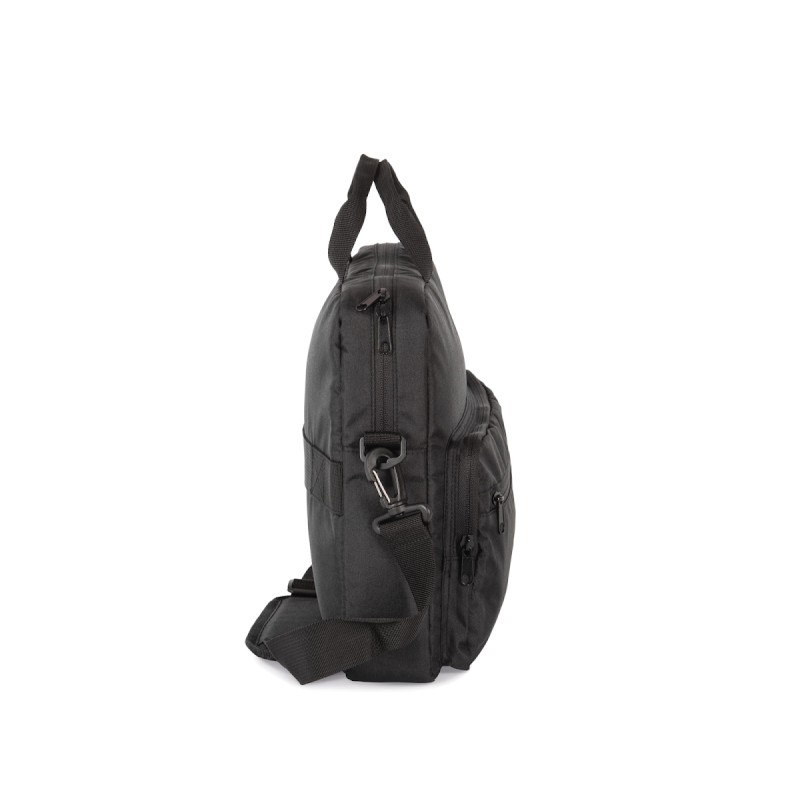 100% polyester. Sac de travail conçu à partir de 60% de polyester recyclé. Double poche avant avec fermeture éclair pour une personnalisation facile. Compartiment principal matelassé porte-ordinateur jusqu'à 15 pouces. Languette arrière pour enfiler le sac dans la poignée du trolley.
