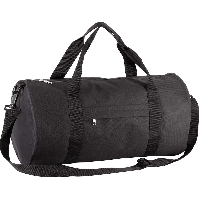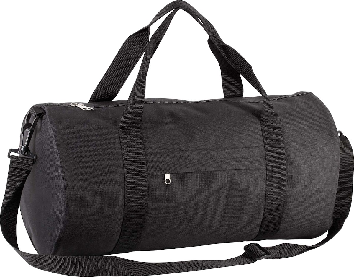 Sac en polyester 600D, forme tubulaire, une poche zippée sur le côté, lanière d'épaule ajustable.