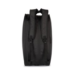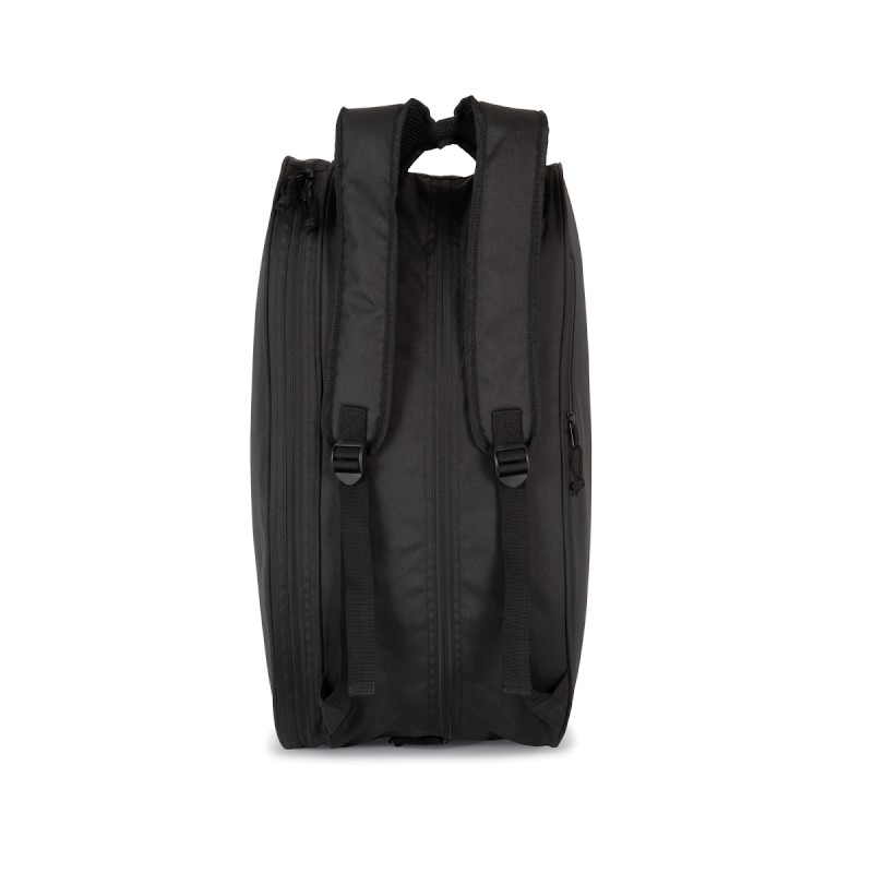 100% polyester. Sac à dos de sport conçu à partir de 60% de polyester recyclé. Idéal pour la pratique du Padel. Compartiment latéral matelassé porte-raquette. Poche latérale porte-objets avec fermeture zippée.