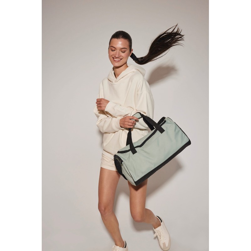 100% polyester. Sac de sport essentiel conçu à partir de 50% de polyester recyclé. Poche latérale avec fermeture zippée.