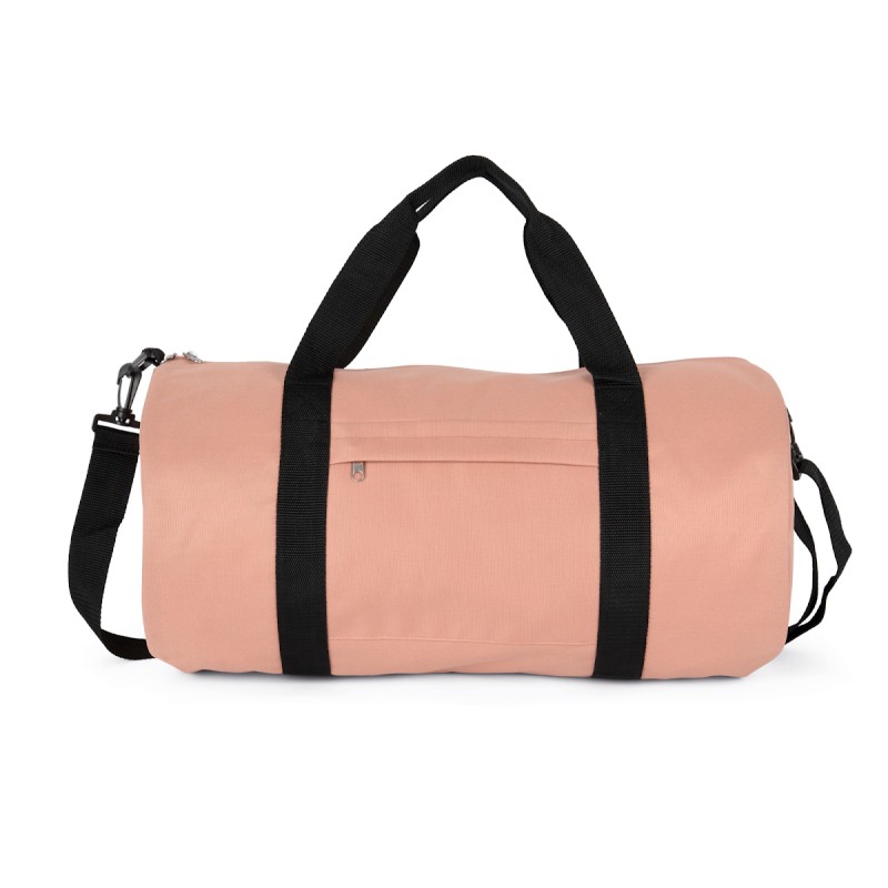 100% polyester 600DPVC RPET. Sac polochon conçu à partir de 50% de polyester recyclé. Poche avant avec fermeture zippée. Bandoulière réglable.