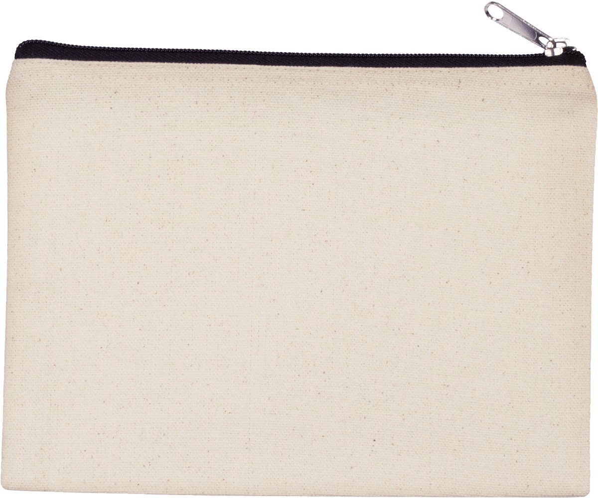 Pochette en coton canvas, fermeture zippée de couleur contrastée. Modèle moyen.