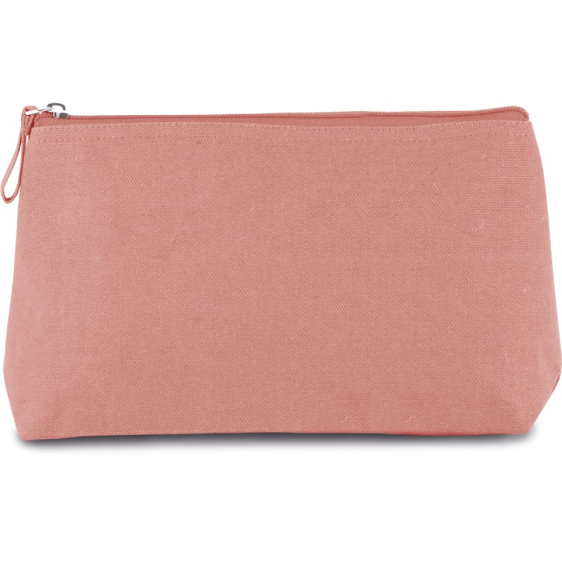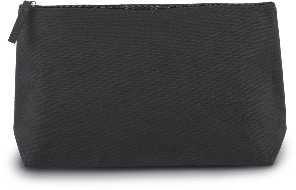 Trousse de toilette à soufflet en coton laminé (polyuréthane). Fermeture zippée et tirette ton sur ton.