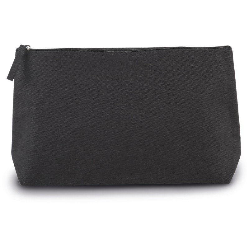 Trousse de toilette à soufflet en coton laminé (polyuréthane). Fermeture zippée et tirette ton sur ton.