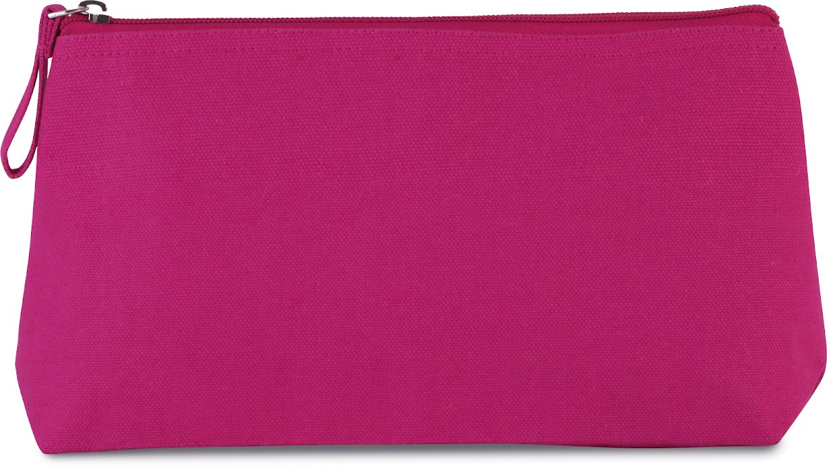 Trousse de toilette à soufflet en coton laminé (polyuréthane). Fermeture zippée et tirette ton sur ton.