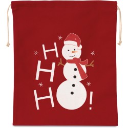 100% coton. Sac avec fermeture cordon en corde, imprimé bonhomme de neige.