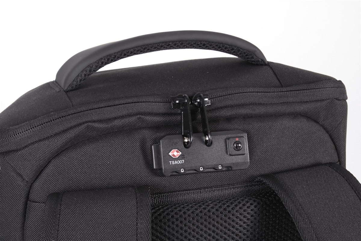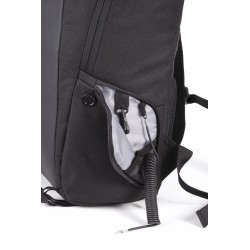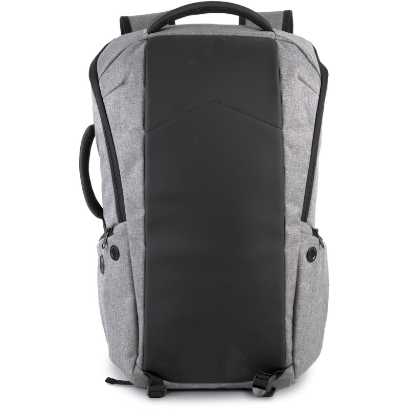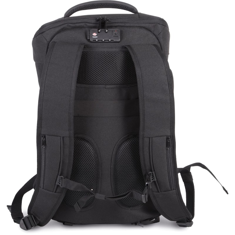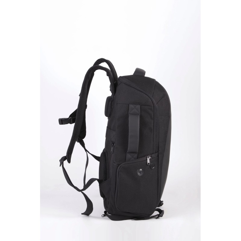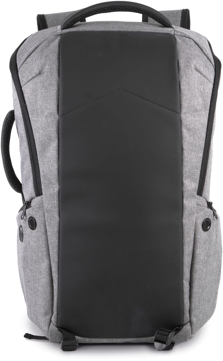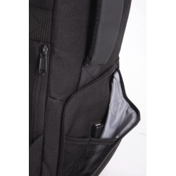 100% polyester. Dont 50% de polyester recyclé. Sac à dos antivol en polyester 600D. Panneau avant avec protection anti-coupure. Fermeture zippée au dos avec système de verrouillage TSA. Poche zippée à accès rapide au dos. Bretelles et sangle de poitrine ajustables. 2 poches zippées sur les bretelles. 2 sangles d'attache sous le sac pour transporter vestes, etc. 2 poches côté. 1 poche de chargement sur le côté, avec 1 port USB côté poche pour connexion de l'appareil à charger, et 1 port micro USB (câble inclus) côté sac pour branchement du Powerbank. 1 poche côté avec câble anti-vol spiralé pour attacher le sac à un pied de table ou de chaise. Compartiment intérieur avec rangement pour ordinateurs jusqu'à 15''. Rangement matelassé pour des tablettes jusqu'à 11''. 2 poches en maille filet. 2 pochettes zippées amovibles pour câbles et accessoires. 2 poches intérieures, dont 1 pour bouteilles/gourdes et 1 pour powerbanks. Housse anti-pluie avec réflecteurs de sécurité intégrée.